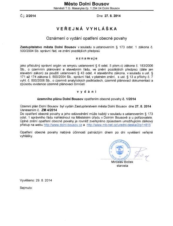 Poznámka: OZV o závazných částech změny č. 1 Územního plánu sídelního útvaru Dolní Bousov